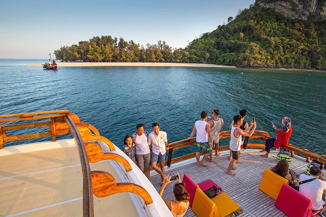 Description: - A 4 Islands Sunset & Dinner Cruise from Ao Nang or Railay in Krabi offers a memorable evening on the Andaman Sea, featuring stops at popular islands like Koh Poda, Chicken Island, Tub Island, and Railay Beach.